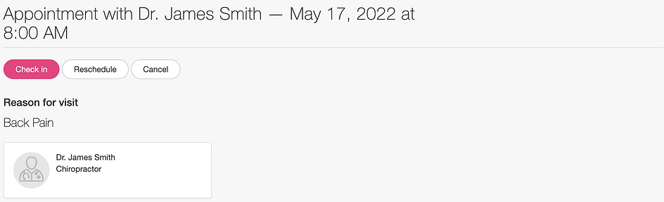 The Appointments page lists your upcoming appointments. Click on the appointment you wish to reschedule to view its details.